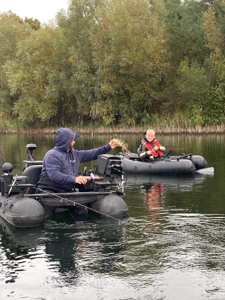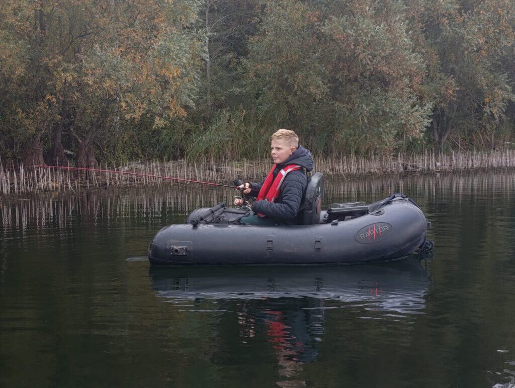 Wanneer we bij het krieken van de dag als vrijwilligers verzamelen bij het afgesproken punt lijken de visgoden ons gunstig gezind: beide dagen is er sprake van prachtig visweer, met niet al teveel wind. Beslist een cadeautje in oktober! Met onze groep vrijwilligers bestaande uit William, Stein, Kevin, Vedran, Thijs, Tom, Cindy, Frank en Eric (die overigens niet allemaal beschikbaar waren dit keer) splitsen we ons op over de twee dagen, en staan we klaar om de kinderen een mooie dag te bezorgen! Waar ik overigens ‘kinderen’ zeg, bedoel ik vooral ‘jongens’. Hoe jammer het ook is: de meiden laten het eigenlijk al sinds de start van dit leuke project afweten, en dat vinden we als organisatie oprecht jammer! Zelf ben ik de tweede dag aanwezig om te helpen, en al snel heb ik mijn bellyboat en hengels klaargemaakt om te starten. Ik heb de avond van tevoren wat research gedaan over deze plek, en het blijkt vooral een karperwater te zijn. Maar ook zijn er meldingen gedaan van meervallen, waaronder één albino-exemplaar. Ook de Zeck V-Stick gaat dus mee aan boord!