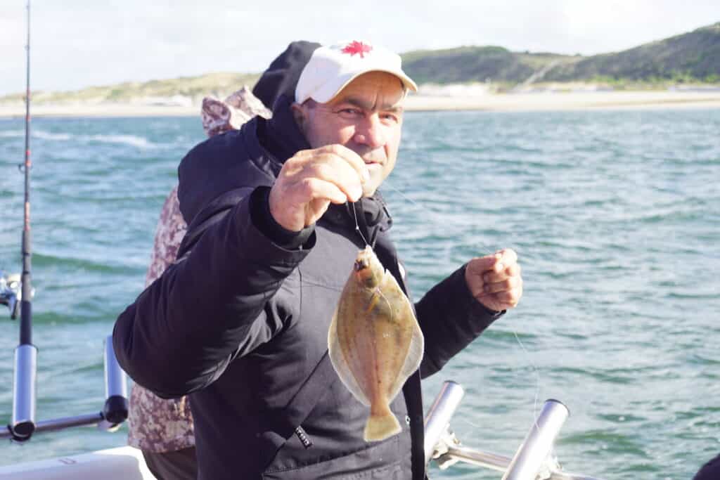 Kapitein Jacco geeft even het goede voorbeeld met een metervis!