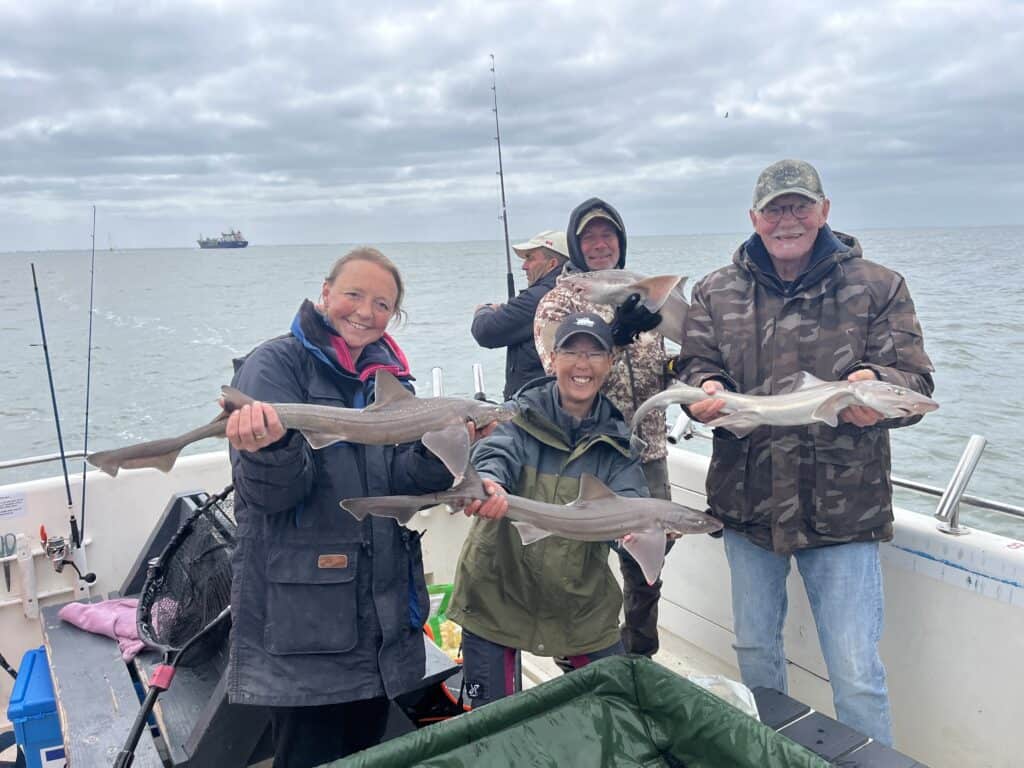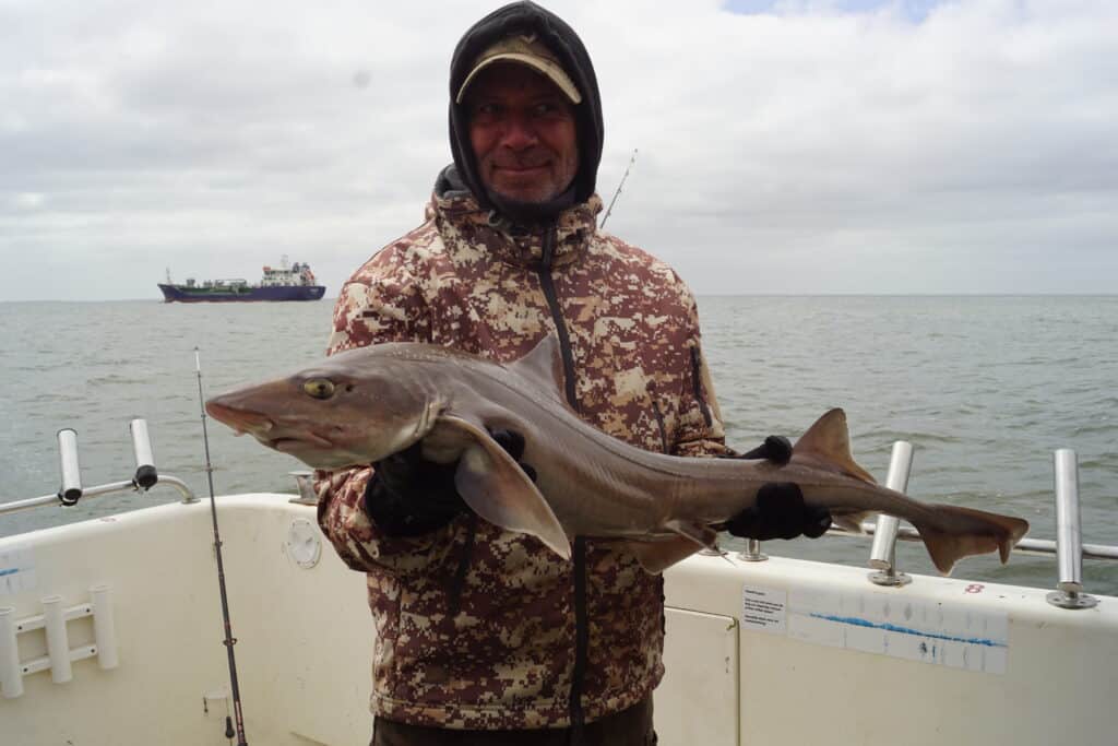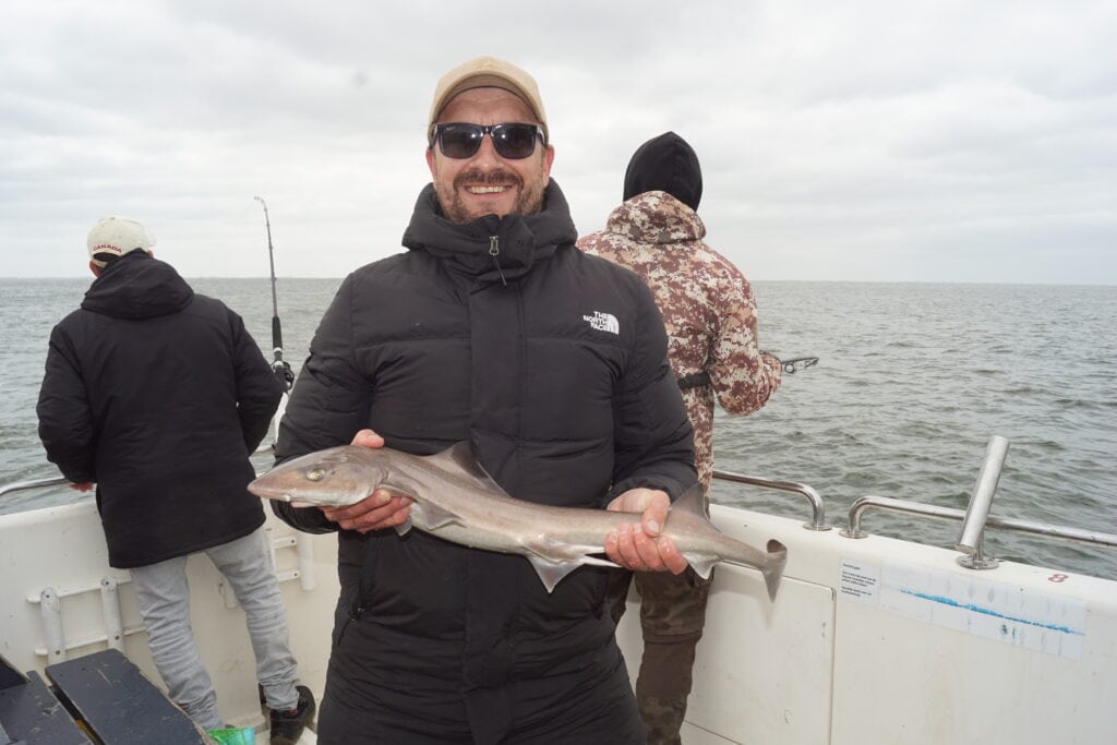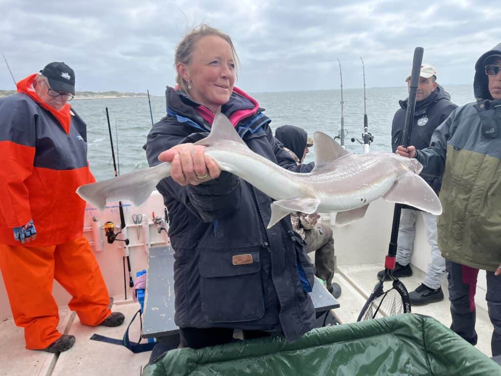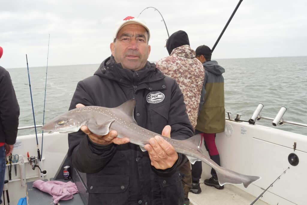 Genadeloos schreeuwt de wekken me om vier uur s’nachts weer uit mijn warme bedje. Mijn dag-en-nacht ritme is al verstoord, want een nacht eerder lag ik nog samen met maatje Paul op de woeste rivier, en ving hij het nieuwe Benelux-record meerval! Veel slaap heb ik sindsdien dus niet gehad, maar het was het allemaal waard, en achteraf gezegd geldt hetzelfde voor vandaag. Want wat hebben we een prachtige dag gehad op de Waypoint van Schipper Jacco! Vorig jaar was ik voor dit toen nog kersverse platform al bij hem aan boord om een reportage over de visserij op de gevlekte gladde haai te maken, en toen ving ik zelfs een exemplaar van 1.20 meter! Jacco en ik besloten dit nog eens dunnetjes over te doen, maar nu onder de inmiddels volwassen Viswereld-vlag. En wat werd het een succes!