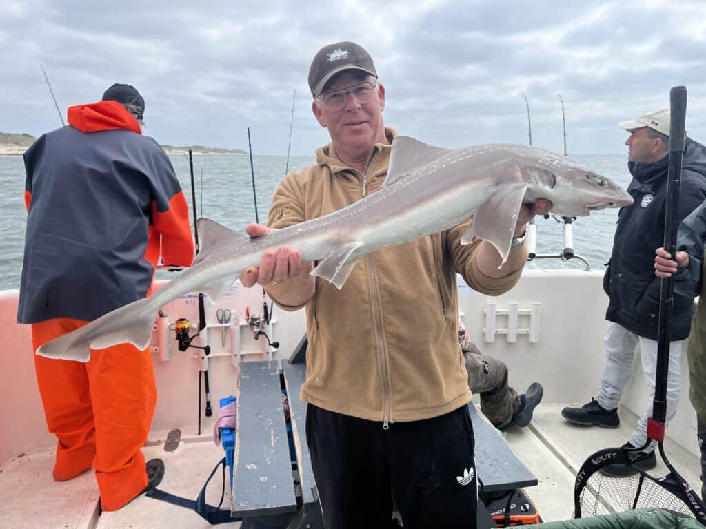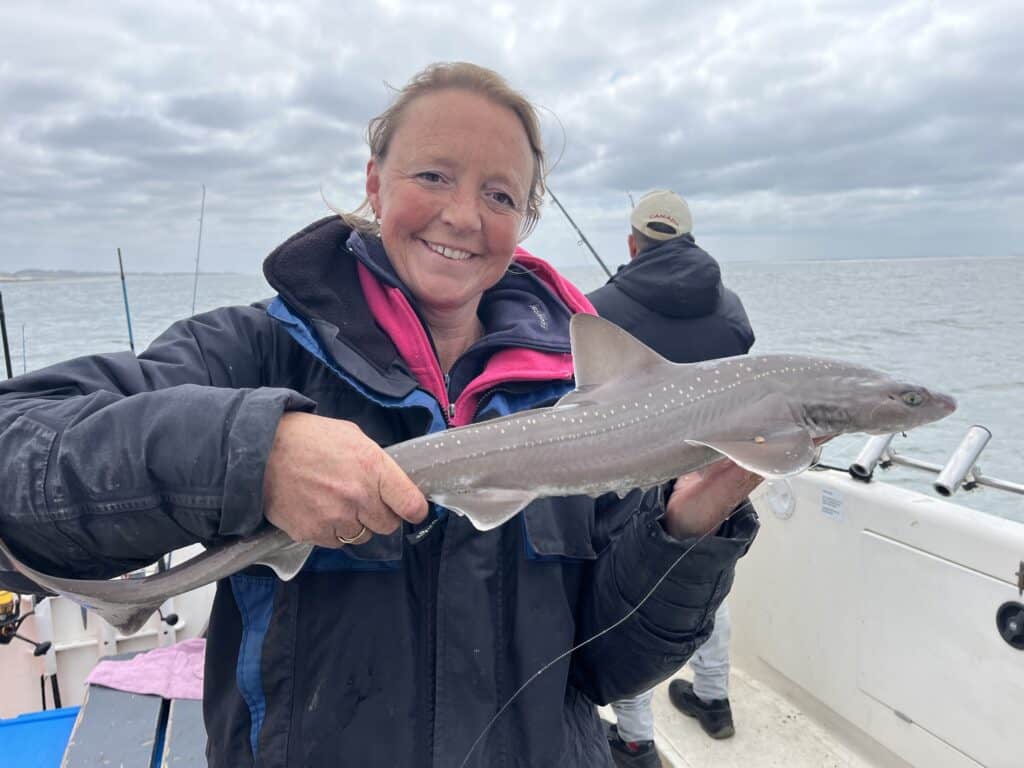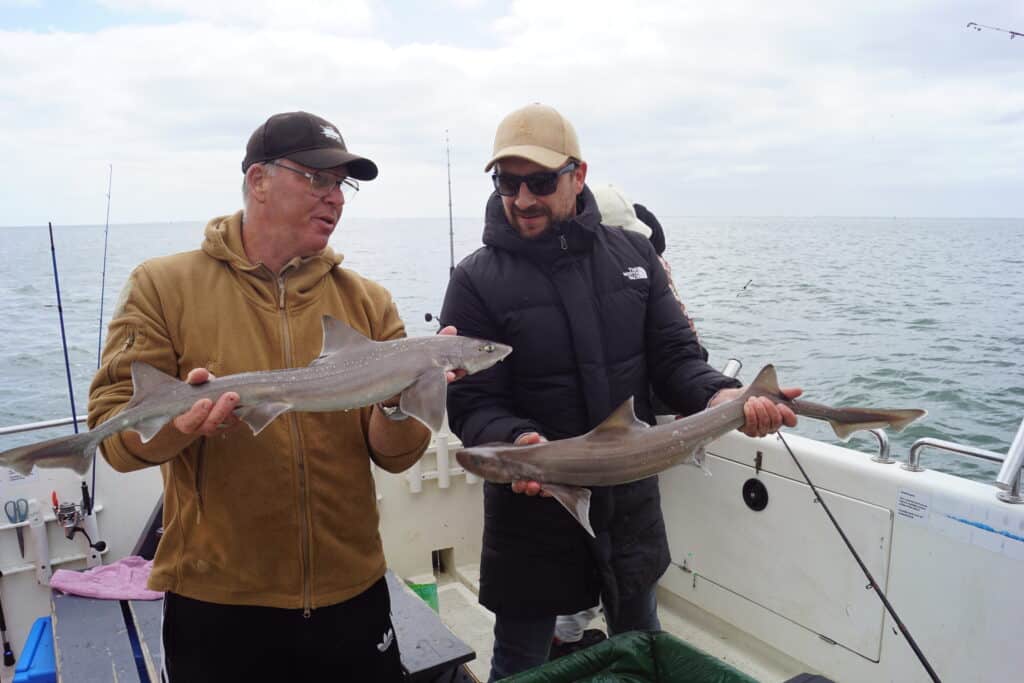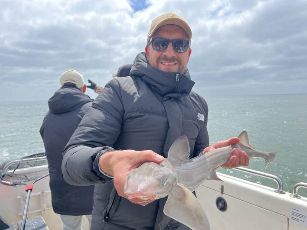 Genadeloos schreeuwt de wekken me om vier uur s’nachts weer uit mijn warme bedje. Mijn dag-en-nacht ritme is al verstoord, want een nacht eerder lag ik nog samen met maatje Paul op de woeste rivier, en ving hij het nieuwe Benelux-record meerval! Veel slaap heb ik sindsdien dus niet gehad, maar het was het allemaal waard, en achteraf gezegd geldt hetzelfde voor vandaag. Want wat hebben we een prachtige dag gehad op de Waypoint van Schipper Jacco! Vorig jaar was ik voor dit toen nog kersverse platform al bij hem aan boord om een reportage over de visserij op de gevlekte gladde haai te maken, en toen ving ik zelfs een exemplaar van 1.20 meter! Jacco en ik besloten dit nog eens dunnetjes over te doen, maar nu onder de inmiddels volwassen Viswereld-vlag. En wat werd het een succes!
