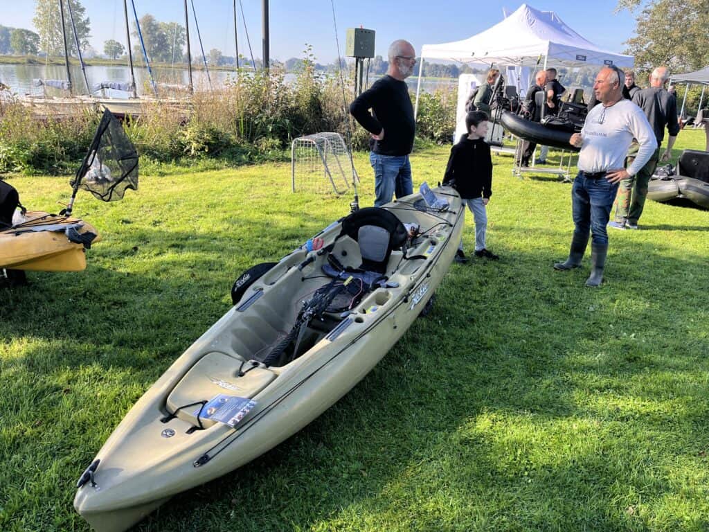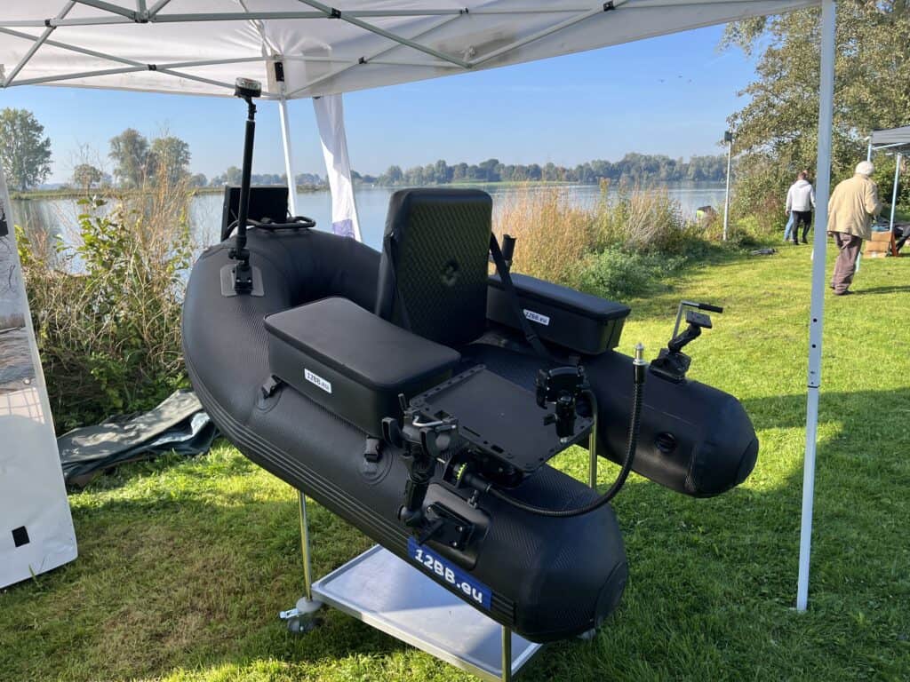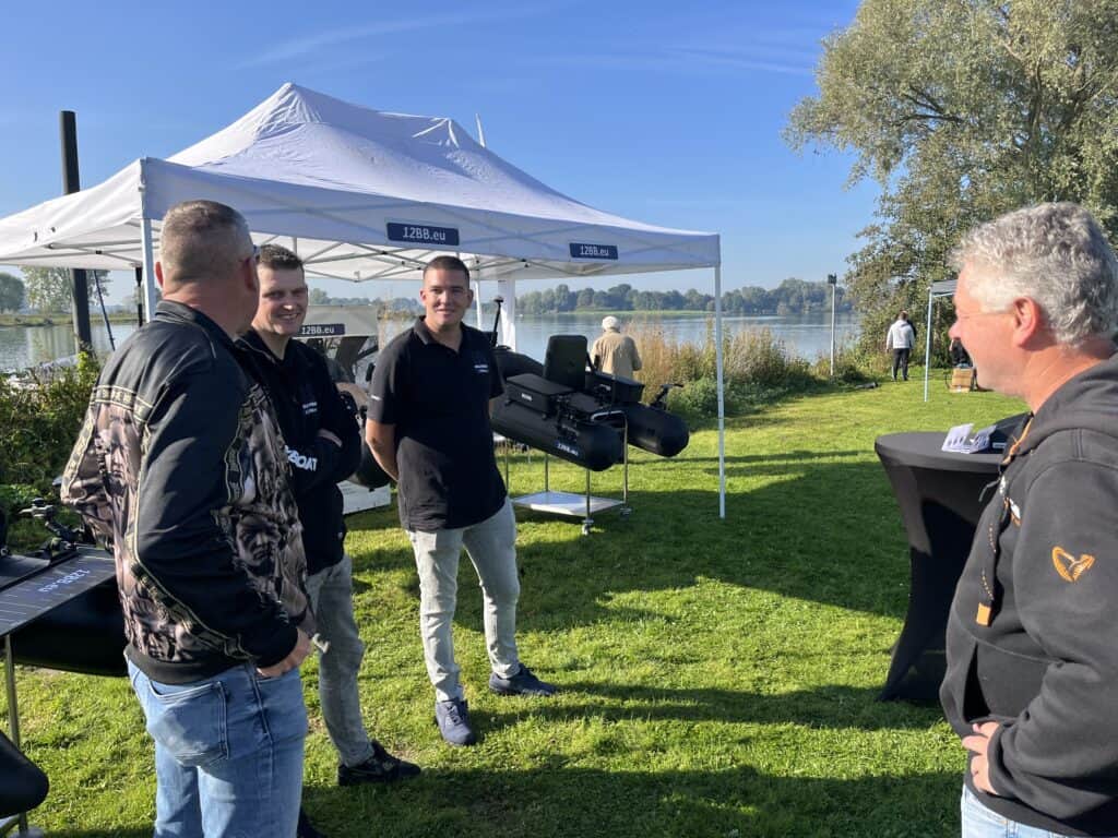Wanneer ik op de parkeerplaats van de Gouden Ham kom aanrijden is het al een drukte van belang met parkerende auto’s. Meteen kom ik allerlei bekenden uit ‘de scene’ tegen, en er valt genoeg bij te kletsen. Ik loop mijn collega-visgids Erik Verloop tegen het lijf, en ben blij te zien dat hij inmiddels weer in duidelijk betere conditie is na een zwaar ziekbed. We kletsen even bij, en daarna ga ik eens kijken wat er hier allemaal te beleven is. Als eerste loop ik tegen de stand van 12BB aan, vandaag bemand door Wiljo en Walter. Hier staan alle 12BB-modellen weer uitgestald, en de nieuwe Jumbo-serie is nu ook verkrijgbaar in carbon-look. Dat staat hem verdomd goed! Daarnaast tref ik de stand van de collega’s van Float Plus aan, en ook hier worden de modellen van dit merk druk bekeken door geïnteresseerden. Ik maak even een praatje met Thijs, en ga dan eens kijken wat er in de grote tent te beleven is.