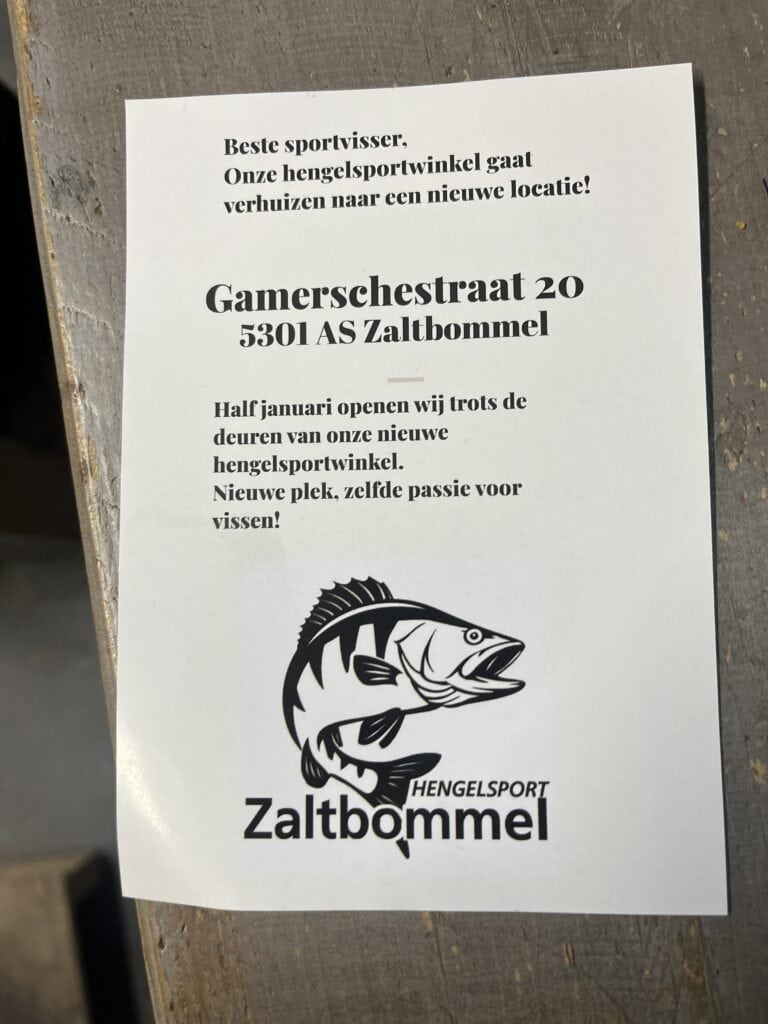 Hengelsport Zaltbommel verhuist naar de Gamerschestraat 20!