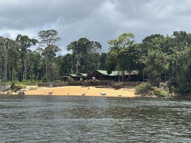 Na een lange reis zijn we allemaal in Guyana aangekomen. Door slecht weer in de jungle hadden we een beetje vertraging met de vlucht, en veiligheid gaat natuurlijk voor. Nadat we de vlucht hadden gehad moesten we nog twee uurtjes met de boot naar de lodge, waarvan een stuk in het donker. Maar de kapiteins van de boten die zijn daar zo goed bekend dat dit geen probleem is. In de lodge is een Starlink aanwezig, zodat de communicatie tussen ons goed verloopt. Alleen overdag op de boot in de jungle is dit een kleine uitdaging. Hiervoor had ik een beknopt woordenboek gemaakt, en een blad met foto’s van de meest voorkomende vissen. Zo konden de vissers dit aan de kapitein laten zien, en aanwijzen wat ze graag als volgende wilde vangen. Zo kon de kapitein ze naar een gebied brengen waar ze een goeie kans hadden om deze vis te vangen . Dit was heel erg behulpzaam voor de gasten, en er werd dan ook goed gebruik van gemaakt. De vertaling van vissoorten klopte helaas niet altijd of werd te letterlijk vertaald. Een kniesoor die er op let..