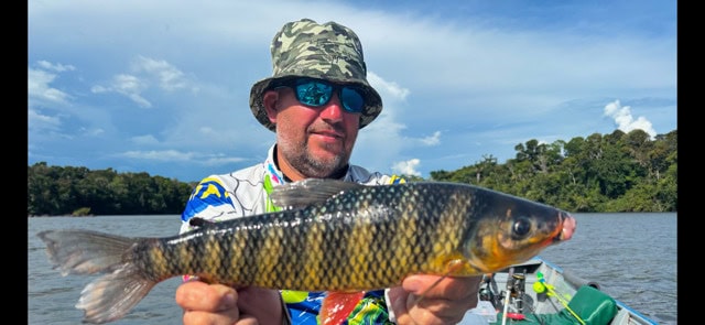 Elke dag hebben we met de groep tijdens het ontbijt een plan gemaakt voor de dag, en geholpen dit met de kapiteins kort te sluiten. Uiteindelijk was iedereen vertrokken voor de vis van hun dromen. Er was ook een koppel bij dat nog nooit had gevist, en eigenlijk vooral was meegegaan om te fotograferen en wat jungle exploring. Maar door al ons enthousiasme zijn ze toch mee in de boot gegaan. Ik heb meneer en mevrouw een hengel in de hand gegeven en we zijn gaan jiggen: verticaal vissen, en niet werpen vanwege de veiligheid. Precies uitgelegd hoe en waarom deze techniek word gebruikt, en dit werd goed opgepakt met na een kwartier vissen een grote Payara van 17 pond! Dit smaakte natuurlijk naar meer, dus samen met de kapitein een plan gemaakt dat ze de eerste dag bij mij en mijn kapitein in de buurt zouden blijven, om ze zo nog een beetje te kunnen helpen als de nood hoog is. Nadat we vertrokken waren kon ik zelf met een andere kapitein mee gaan, om zelf een beetje te vissen. Zo had ik weer wat tijd om kunstaas te testen en een paar spinhengels uit te proberen. Maar ook weer met een doel om op grote meervallen te vissen!