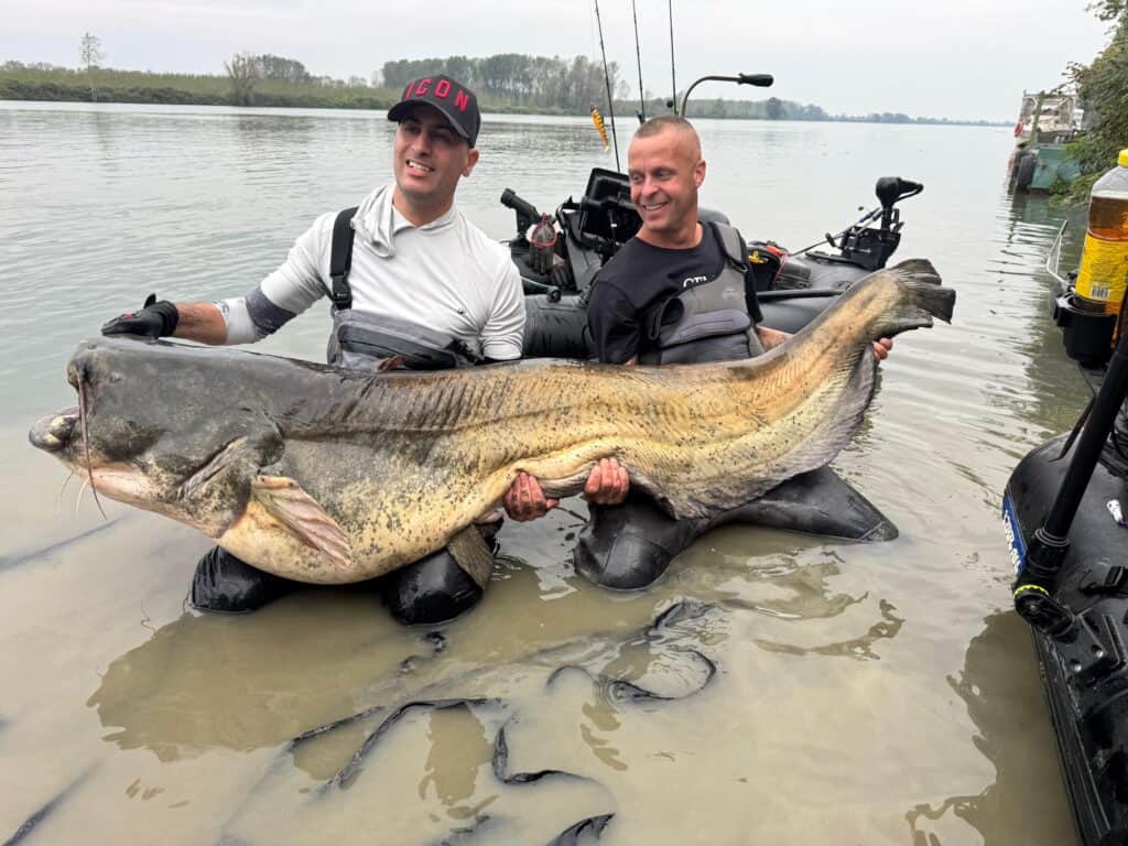 We hebben dit keer dan weinig vissen mogen vangen, maar om eerlijk te zijn was dat tijdens deze trip eigenlijk bijzaak. Want wat kwamen we in een warm bad van vriendschap, enthousiasme en gezelligheid terecht! We zijn echt helemaal in de watten gelegd tijdens ons verblijf, en als we ergens voor wilden betalen werd dat gedecideerd geweigerd. Enorm veel dank aan alle leden van visclub la Tana in Roncarolo, en met name aan CFM-teamlid Matteo Migliore, die zich werkelijk de benen onder het lijf heeft gelopen om alles voor ons te regelen! We kregen zelfs een behoorlijk pakket aan heerlijke lokale vleeswaren en kaas mee naar huis om na te genieten van deze trip, waarbij ook nog eens keurig netjes rekening werd gehouden met het feit dat Mo als moslim zijnde geen varkensvlees eet. Voor hem was er een extra pakketje kaas! Gelukkig komt hij snel weer naar Nederland, zodat we dat terug kunnen geven! Ook hotelier Filippo bedankt voor de goede zorgen, en voor de drankjes die bij het afrekenen van het huis bleken te zijn! Ontzettend lief! Yuri, Alessandro en al die andere Italiaanse meervalsterren die ik voor het eerst in levende lijve heb mogen ontmoeten: jullie zijn geweldig! Ik herken de passie die jullie drijft! En natuurlijk mijn maten Mo en Paul: wat hebben we gelachen en gestreden deze paar dagen! Door zo’n trip leren we elkaar natuurlijk ook veel beter kennen. Jullie weten nu immers dat ik snurk als een zaagmolen en echt bizarre scheten laat. Het zal de leeftijd zijn 🤣