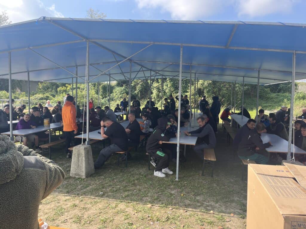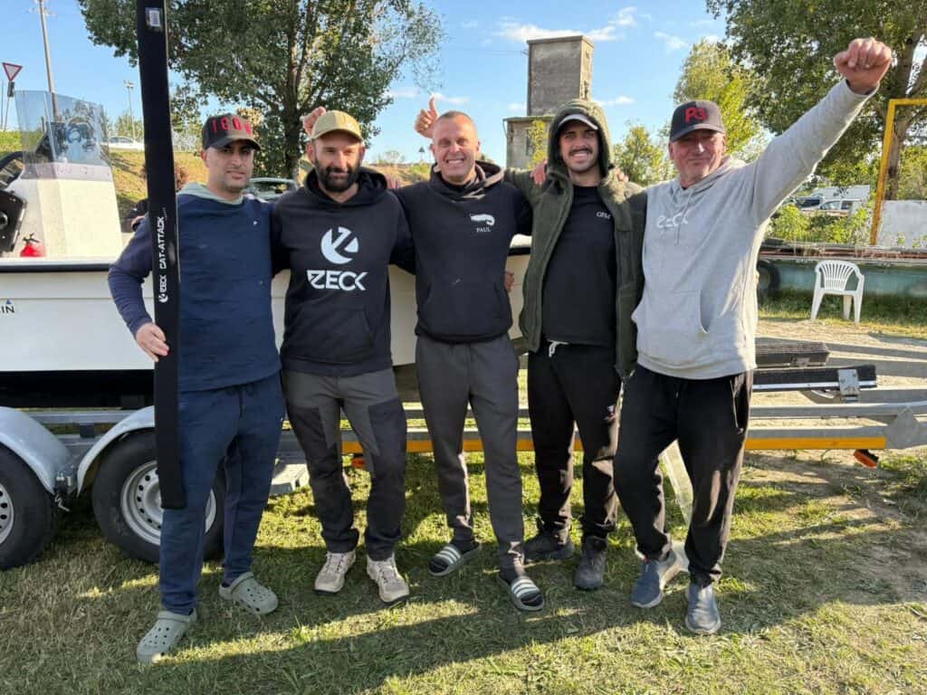 Zoals gezegd besloten we eerder de wedstrijd te laten schieten om bovenstaande gezelligheid ten volle te kunnen ervaren, en daar hebben we absoluut geen spijt van. Dit hadden we voor geen goud willen missen, want hier praten we over decennia nóg over. Het heerlijke eten, de enorme gezelligheid en de warmte van al deze mensen! Maar wanneer we eenmaal terug op de visclub andere deelnemers aan de wedstrijd spreken, blijken de vangsten die nacht nogal te zijn tegengevallen. We horen in elk geval niemand over de vangst van grote vissen. En naarmate de klok richting het tijdstip van één uur s’middags kruipt, begint het geroezemoes al te gonzen.. Zouden die ‘Hollandesi’ het gaan flikken? Het zou wel een sensatie zijn tussen al deze lokale cracks natuurlijk.. Maar eerst gaan we met zijn allen lunchen! Onder de stralende zon genieten we met zijn allen weer van een memorabel lekkere maaltijd, met daarbij natuurlijk een goed glas wijn! Wat een fantastische sfeer hangt er op dit evenement! Als meervalvisser móet je dit gewoon meemaken! We doen nog even een rondje langs alle stands en maken overal een praatje, en dan is het tijd voor de uitslag.. De teams nummers drie en twee blijken beiden als grootste vis een exemplaar ruim onder de twee meter te hebben aangeboden, en dan klinkt het verlossende woord: Team Cat Fish matties wint A Tutto Siluro 2025! We ontvangen uit handen van Yuri een prachtig prijzenpakket, dat we meteen afstaan aan de club als dank voor de geweldige ontvangst. Want voor wat hoort wat, en we zitten zelf toch al niet krap in de spullen zeg maar..