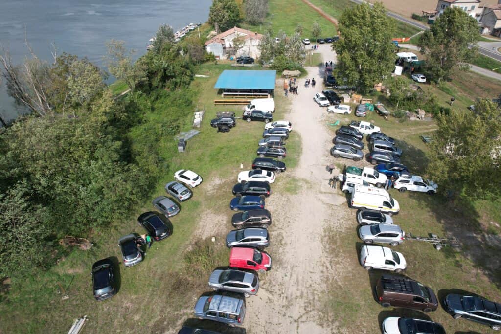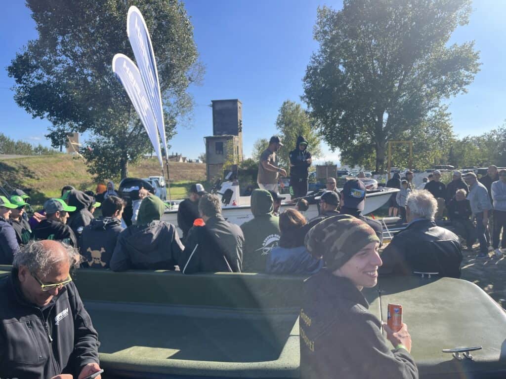 Het hoofddoel van onze trip is uiteraard het bezoeken van het event A Tutto Siluro, georganiseerd door visclub La Tana in Roncarolo. Paul heeft al jaren zeer warme banden met de leden van deze club, en dat heeft een reden. Jaren geleden zou Paul eens hier aan de Po op stap gaan met een zeer bekende Tsjechische meervalvisser, maar deze liet hem in Italië staan, en ging zelf richting Spanje. Ontredderd liep Paul die dag door het dorp, totdat mensen van deze visclub hem onder hun hoede namen, en hem zo alsnog een onvergetelijke trip bezorgden. Uit dankbaarheid schonk Paul na afloop zijn bellyboat aan de club, en zo werd een vriendschap gesmeed die tot op de dag van vandaag voortduurt! En dat was te merken bij aankomst bij het event! Wanneer we aan komen rijden klinkt er een enthousiast gejoel uit de mensenmenigte die op het terrein aanwezig is, en gelijk na het uitstappen worden we enthousiast begroet door alle aanwezigen! En ik ontmoet veel bekende gezichten en grote namen van YouTube nu in het echt: Yuri Grisendi, Allessandro Bianchardi, Simone Memoli en nog vele anderen, en allemaal zijn ze supervriendelijk. Net als iedereen hier overigens! Onze ontvangst voelt echt als een warm bad, en we worden als koningen onthaald! Wat een ontzettend lieve mensen! Maar na de eerste hartelijke begroetingen moet er worden gevist. Er vindt tijdens het event namelijk ook een wedstrijd plaats, en natuurlijk willen we onze huid duur verkopen tussen al die lokale cracks! Snel maken we onze bellyboten gereed, en gaan we te water. Op jacht naar het monster van de Po!