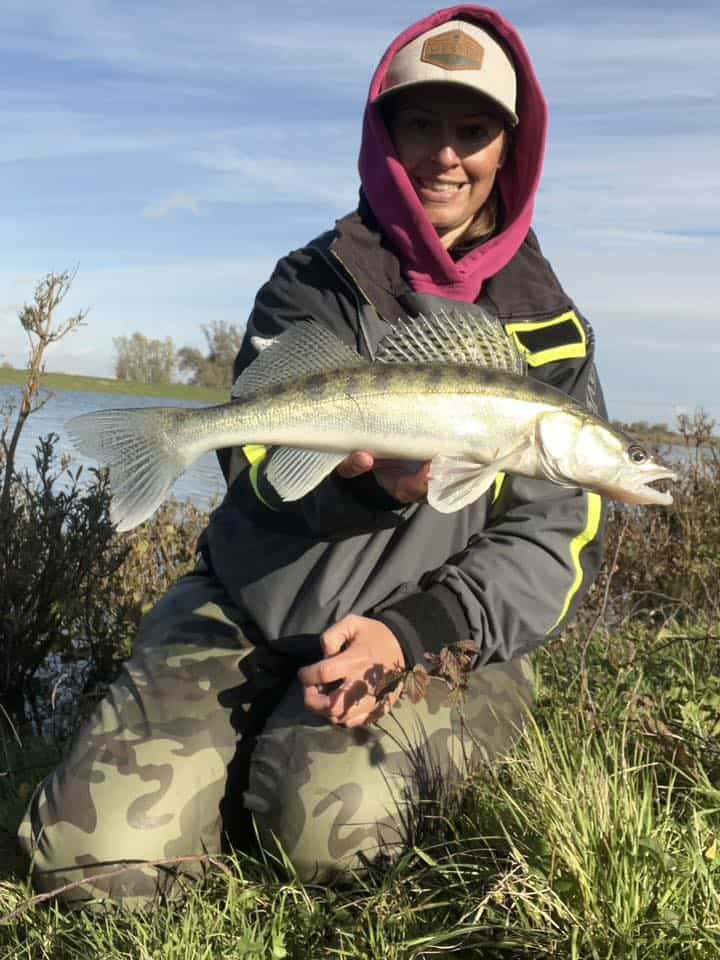 Michelle van Wamel zag het water in de rivier stijgen en troebeler worden. Dan gaat de focus uiteraard op de snoekbaars. En met succes, want ze mocht drie van deze rakkers vangen die dag! Lekker gevist Michelle!