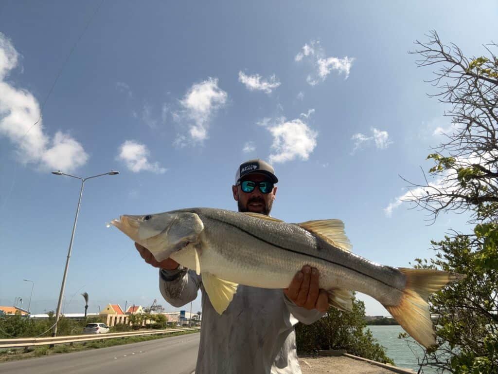 Lesley Luijer laat ook op vakantie de hengels niet in het vet! Deze schitterende snook gaf een eersteklas gevecht weg! Da’s weer een mooie aan het palmares Les!