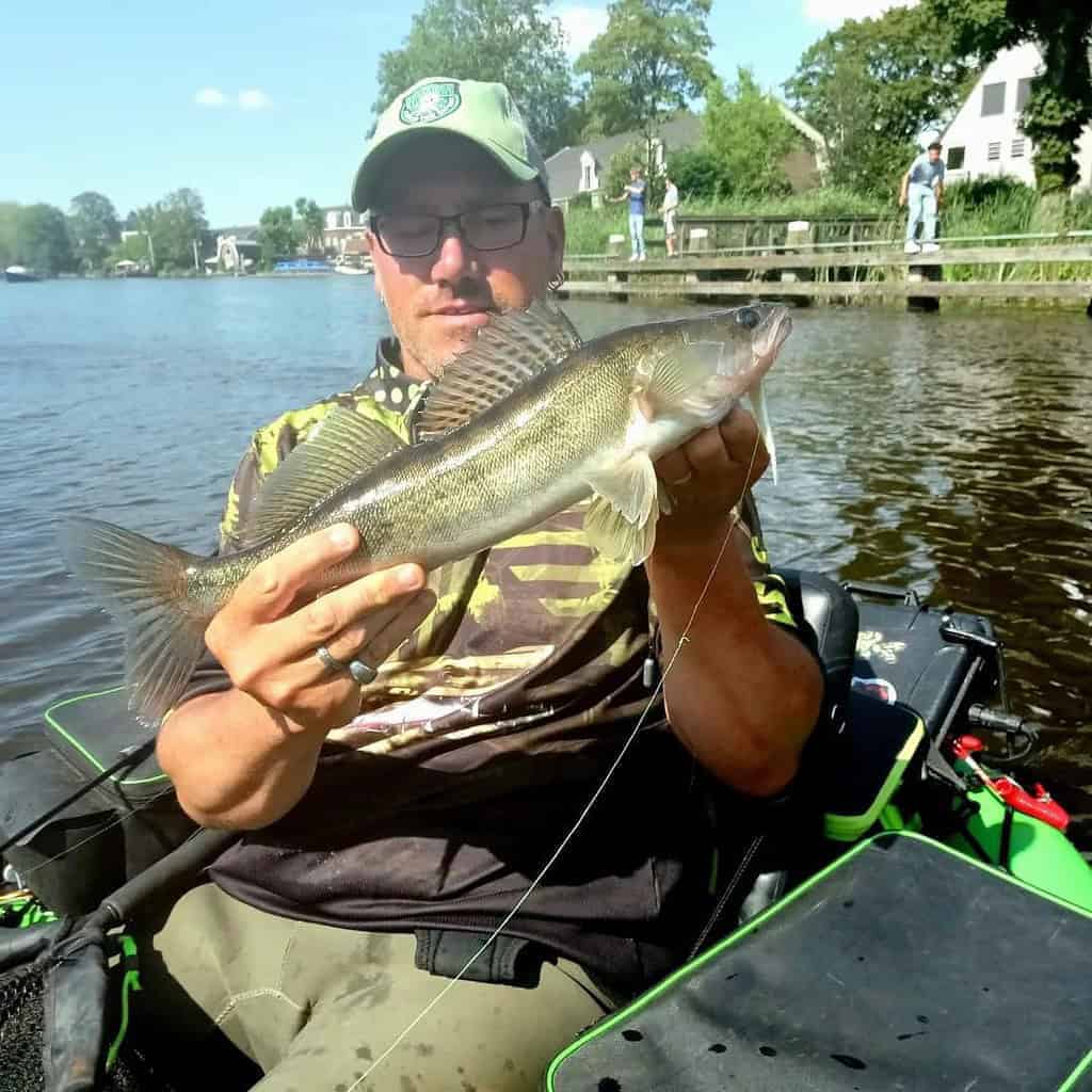 Ook Chris Meijer is weer present! Niet alleen vanaf de kant, maar ook vanuit de bellyboat weet hij weer zijn snoekbaarzen te vangen! Lekker gevist Chris!