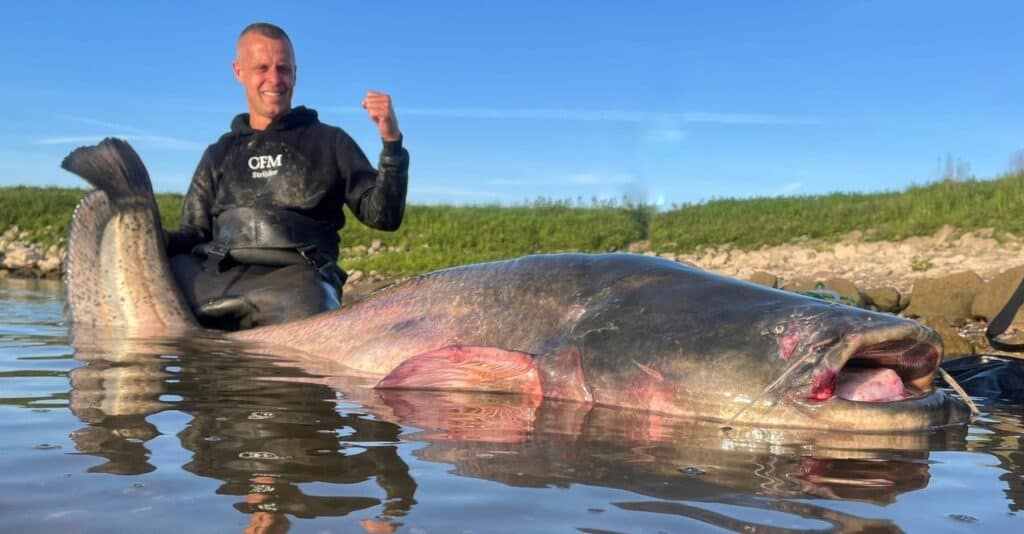 Hessel Wijbenga ging in zijn eentje de rivier op, op jacht naar meerval. En dat lukte verdomd aardig! Dit was zijn grootste, en die heeft aan de dikke pens te zien niet achteraan gestaan toen de lunch verdeeld werd! Mooie vangst Hessel!