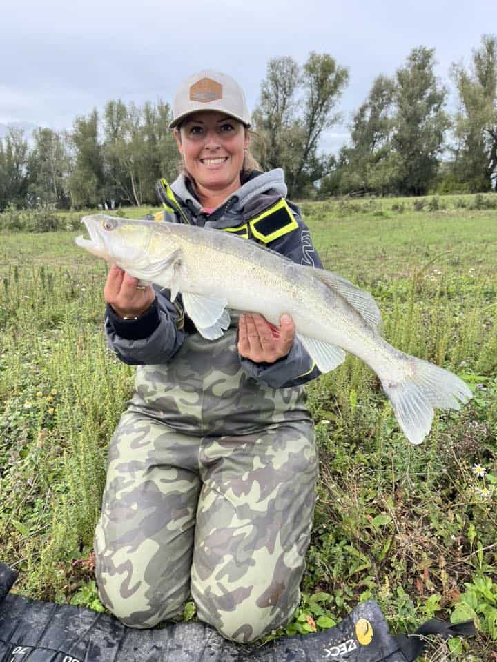Ook Michelle van Wamel keerde zich weer naar het doodaas deze week. Deze mooie snoekbaars trapte in een dood grendeltje aan de dropshot!