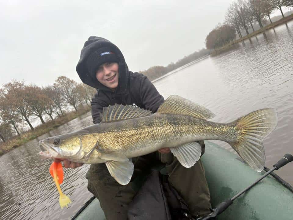 Benk Gruijters met een schitterende snoekbaars aan een forse shad! Zo zie je maar dat ze best een grote hap lusten! Goed gevist Benk!
