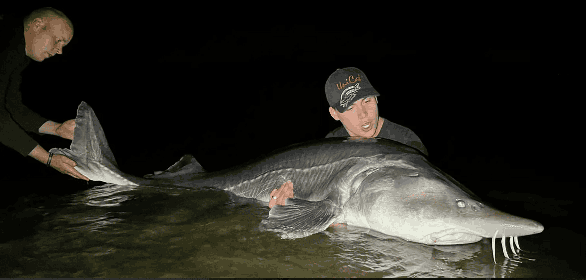 Vraag: Hoe groot worden de steuren bij Fishing Adventure? Antwoord: Er zwemmen vissen van recordformaat. Tijdens onze sessie landden we een exemplaar van 2,20 meter, maar er zijn meldingen van nog grotere beloegasteuren die de visserij daar wereldberoemd maken.