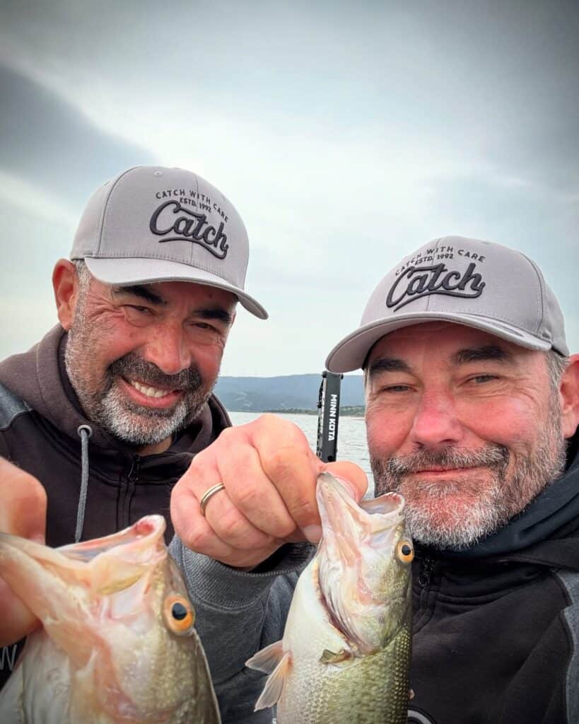 Lago Omodeo bleek een verborgen juweel! We vingen dagelijks prachtige black bass, ruim boven de 2 kilo; een serieus formaat voor Europa! Evert verbrak zelfs twee keer zijn persoonlijke record (PR) en landde een indrukwekkende vis van 2,73 kg en 54 cm. Dat werd dus zwemmen voor hem in het nog behoorlijk koude water.. Mijn eigen nieuwe PR werd 2,61 kg en 51 cm. Hard vechtende en beresterke vissen die echt een fantastisch gevecht leveren aan het juiste materiaal! Dit meer is overigens relatief onbekend en er is geen Navionics-kaart van beschikbaar, waardoor we alles zelf moesten uitpluizen. De aantallen waren niet gigantisch, maar elke dag was er een reële kans op een écht grote vis. We boekten succes met verschillende technieken. De Cranky X Crankbait van Strike Pro en de Pig Hula Chatterbait werkten uitstekend, net als de Piglet Shad op een jigkop – vergelijkbaar met hoe we in Nederland op baars vissen. Voor de echt grote vissen was de Miuras Mouse Mini een gamechanger. Dit kunstaas was voor de Black Bass op dit meer nog onbekend, maar dat is nu verleden tijd! Onze tip: Blijf bij je eigen visstijl. Als je in Nederland succesvol bent op roofvis, en natuurlijk met name op (grote) baars, kun je die technieken prima toepassen op black bass in Europa. Zoals ik al eerder zei is deze visserij vrijwel exact hetzelfde als het vissen op de ‘gewone’ baars.